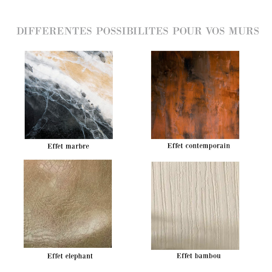 Le stucage effet éléphant crée une texture craquelée et organique, évoquant la peau de l'animal. Il offre un rendu brut et authentique, idéal pour apporter du caractère et une touche naturelle aux espaces intérieurs.